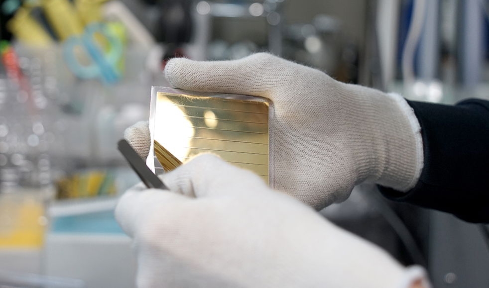 できあがったSn(錫)系ペロブスカイト太陽電池セル