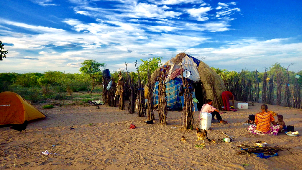 抜けるような青空の下、枝をアーチ状に組んだ草葺きの小屋には、雨期対策の布がパッチワークのように被せられている。ボツワナの狩猟採集民であるブッシュマンが暮らす住居だ。「調査では小屋の側にテントを張らせてもらいました。飼われている山羊に踏まれて目が覚めたことも(笑)」。写真を見ながら楽し気に語るのは杉山由里子さん。2023年に第15回京都大学たちばな賞の優秀女性研究者奨励賞を受賞した新進気鋭の研究者だ。