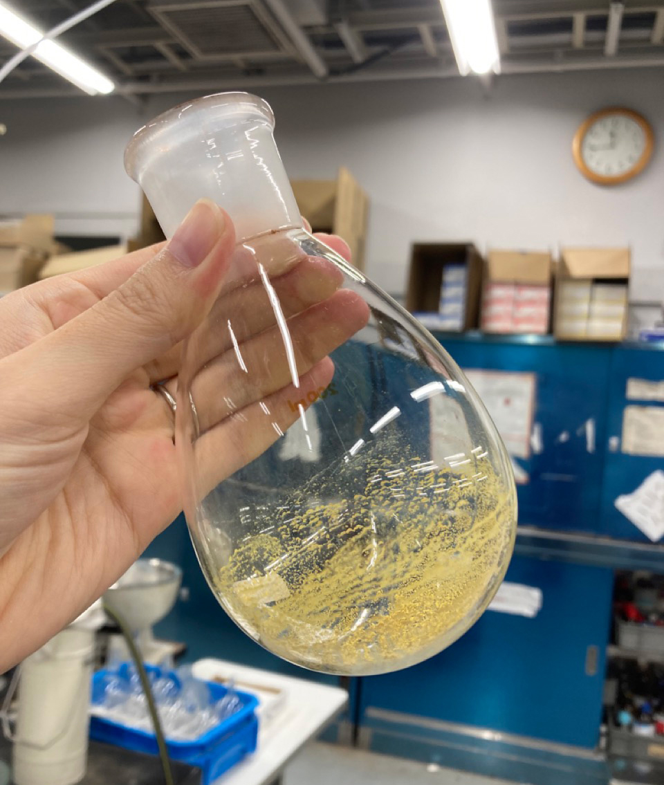 黄色い粒子が現在合成している分子の途中段階の化合物