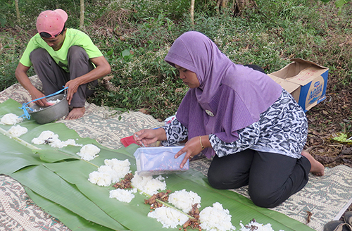 インドネシアにて、コーヒープランテーションの作業の合間の食事の準備(2015年撮影)