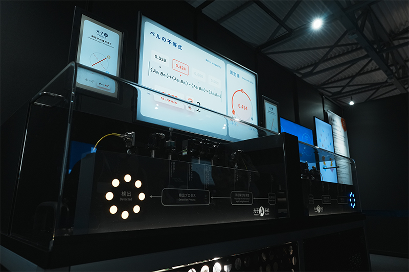 竹内教授が代表となり、大阪・関西万博で「光子のふしぎと光量子センシング」展示を出展。一般には初公開の実験装置で、量子もつれのふしぎな現象をリアルに体験できる。