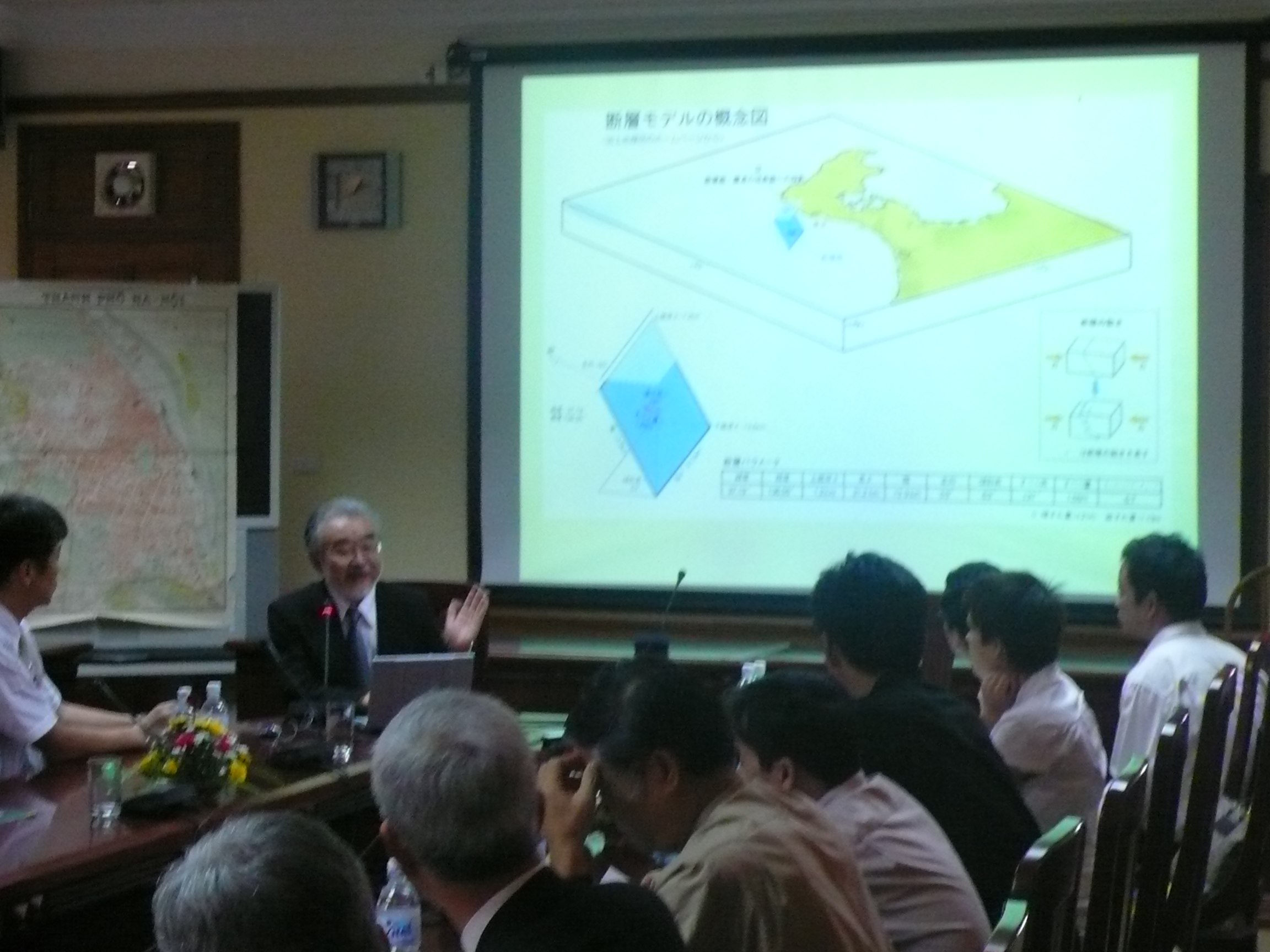 午後、地震の話をした。ベトナムの直下に大地震が起こることはないが、北には雲南省の大地震帯があり、南のホーチミンには中規模地震の起こる可能性がある。2005年11月8日、ホーチミン市で地震が起こったことがあった。M5.1 とM5.5の地震が連発した。これが最近の一番大きな地震である。日本列島では、これくらいの地震がほぼ1日に1回は起こっている。歴史上、1300年にベトナムで大地震があったという記録がある。