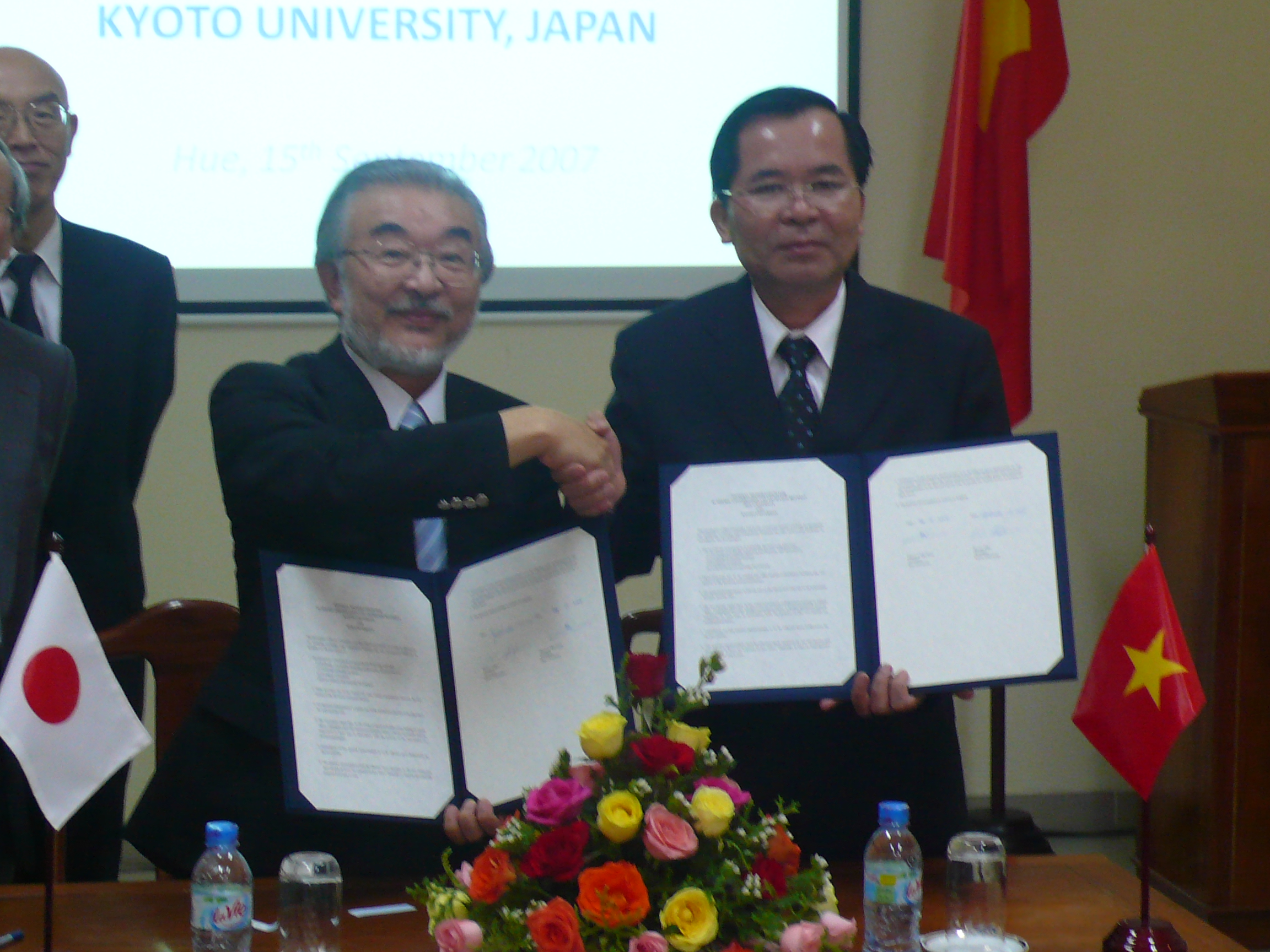 「Kyoto University Office in Hue University」という看板がかかっている。
