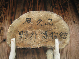 いよいよ京都大学の屋久島観察ステーションである。北海道大学、神戸大学、奈良教育大学などから研究者や学生たちが来ている。今は8人がこのステーションを拠点にして島の中でフィールドワークに従事している。今使っている建屋の横に古い小さな一軒家がある。入り口には「屋久島野外博物館」と書いたサルノコシカケの表札が掲げてある。昔みんなで募金して、70万円ほどで建てたという。中の設備がしっかり充実している。