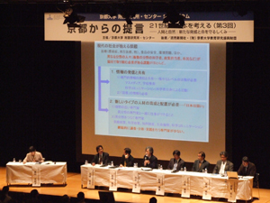 総合テーマを「京都からの提言−21世紀の日本を考える」、サブテーマを「人間と自然:新たな脅威と命を守るしくみ」として、尾池和夫総長、松本紘副学長の挨拶の後、5つの講演とパネルディスカッションが行われ、満員となる900名の参加者が熱心に聴講されました。