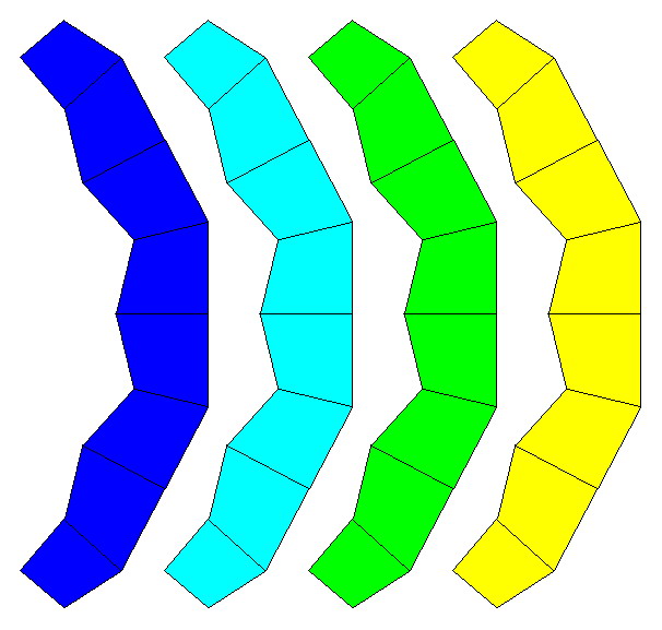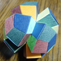 今回紹介するのは凧形十二面体(仮名)です。凧形(kite)とは、定義は知りませんが、四角形で2本の対角線のうち一方について対称な図形です。菱形十二面体を少し変形したものなのですが、私の周りの人の感想では、座りが悪い・錯視図のようで気持ち悪い、などの理由で不評でした。作るのは簡単なので、実際に作ってその気持ち悪さを体験していただきたいと思います。