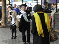 先日は、秋葉原で「パズル公爵」のコスプレでビラ配りをして参りました(写真上)。寒い中、付き添いのメイドさんが配るバレンタインチョコにつられてビラを受け取ってくださる方が目立ちました。