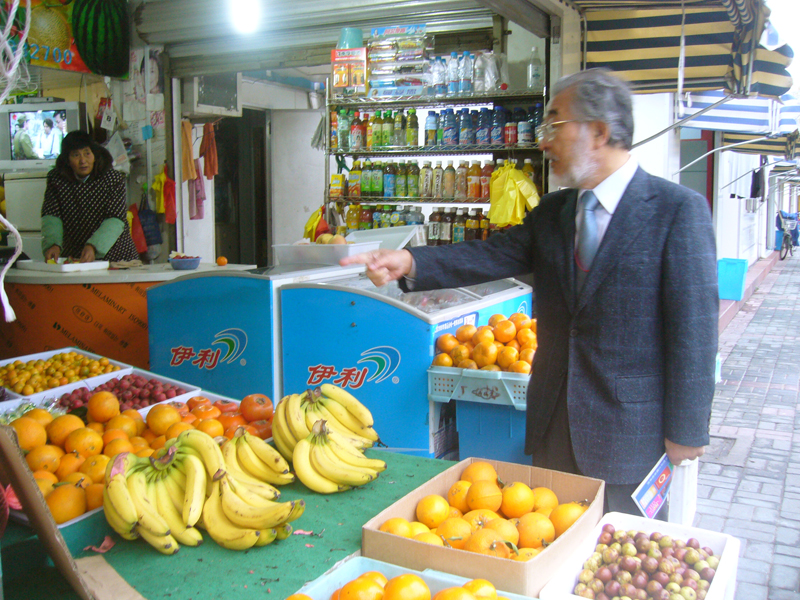 12月8日は10時に関西国際空港を出発した。早く出るとあとが楽で、着いてからが楽しい。上海には11時30分に着いた。夕方の上海蘭生大酒店での歓迎会までに充分時間があるので、その時間を利用して、復旦大学の学生寮と留学生寮を見学することにした。これらの寮は専用の敷地に塀と門で区切られて建てられているが、門の前に商店街があり、たくさんの店を学生が経営している。果物屋から本屋、コピー屋までたくさんの店が賑わっている。