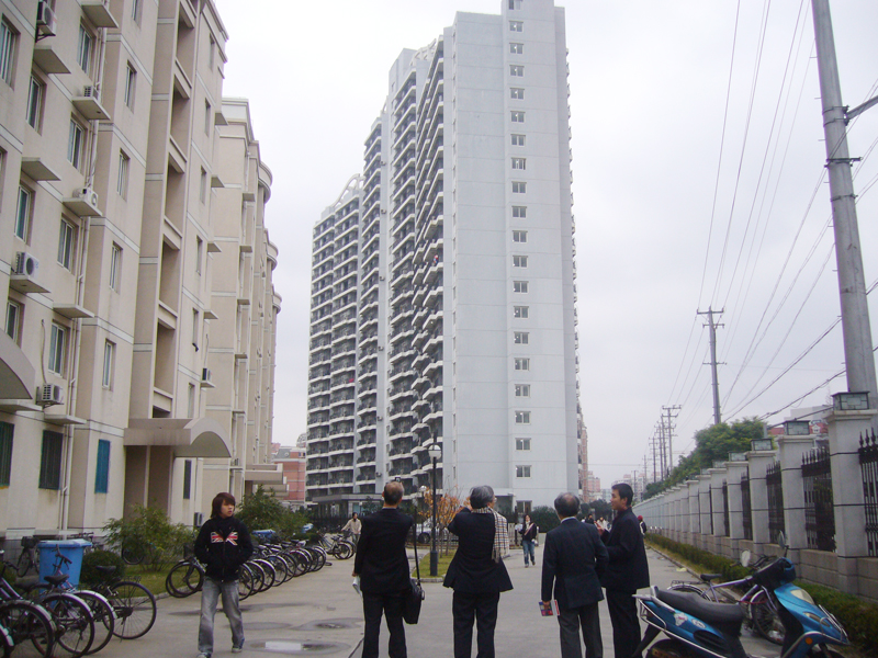 一般学生の寮は7階建てで、建物が並んで大団地を形成している。自治寮の試みも実行されている。年1400元の部屋代で電気代は別に払う。2人部屋4つが単位になっていて、共通のスペースにシャワーなどがある。実際に使っている学生に部屋を見せてもらったが、パソコンをネットに接続して学習をしていて快適そうな部屋だった。
