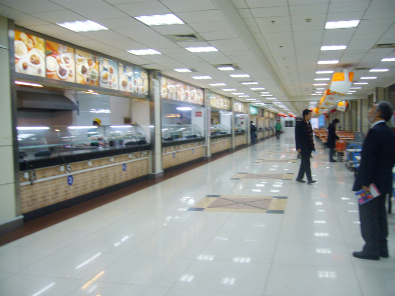 この団地の中にある広大な食堂は1階が大学経営、2階は民間経営、その他にイスラーム用食堂などもある。だいたい5元くらいで定食が食べられる。訪ねたときは休憩時間だったので実物がなかったが、メニューの写真で見ると豊富な料理あり、ボリュームがあって実に美味しそうである。一部は22時頃まで利用可能だという。