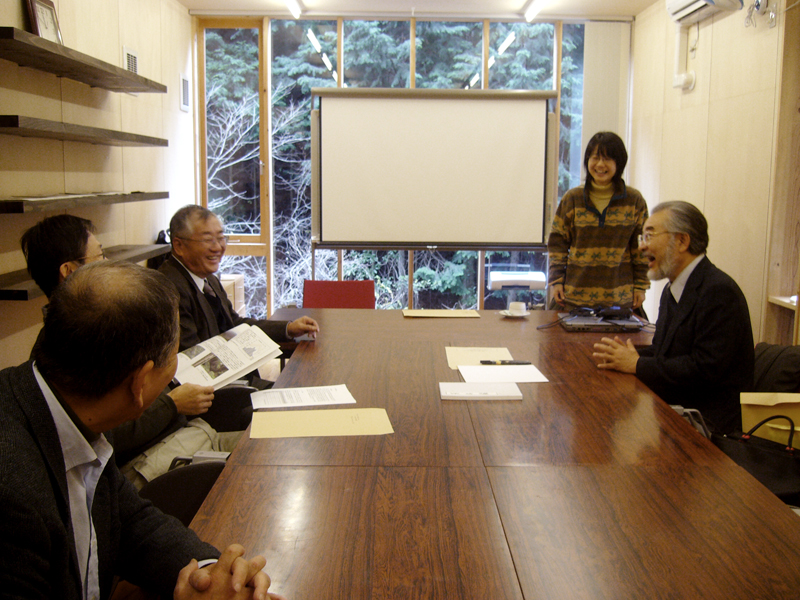 センター長の田中先生、教授の竹内先生、事務長の山田さんたちも京都から来て私たちの見学に参加してくださった。教員は、林長の徳地先生、助手の坂野上先生、職員は技術班長の長谷川さん、技術主任の上西さんたち、たくさんの方々が見学と懇談に参加してくださった。