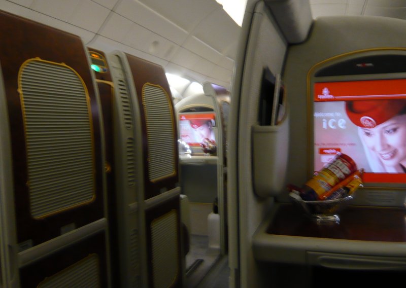 今度は8時30分発のEK837便で、ドバイから針路を西北西にとってバーレーンへ向かう。太陽が昇ってくると暑い。約30分遅れて離陸し、急上昇してすぐ海に出た。また朝食であるが、せっかくだけれども、さっき食べたばかりだからと断った。