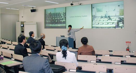 随后,代表团一行访问了学术信息媒体中心(Academic Center for Computing and Media Studies),并听取了喜多一教授对媒体中心活动内容以及教室和研究设备的说明报告,并进行了意见交换。因为潘副院长也是位计算机科学专家,所以对最新的教育及研究设备的颇感兴趣。