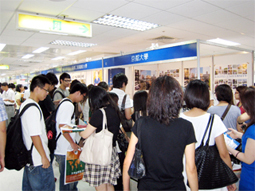 独立行政法人日本大学生助学机构(JASSO),以希望到日本留学的高中生和大学生等为对象,以促进到日本留学为目的,例年都在海外的各个都市举办“日本留学节”。很多日本的各个大学等高等教育机构参加了“日本留学节”,设置了单独的展台,提供入学考试、教育内容、教育组织和其他大学的特色等各种留学信息。国际交流中心和留学生科参加了2009年7月18日(星期六)在台湾高雄、19日(星期天)在台北举办的“日本留学节(台湾)”。