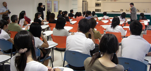 本活动旨在介绍本大学在“食品”领域的最先进研究成果,与此同时,还请泰国的朋友们,尤其是以“食品”为研究课题的当地大学生们,品尝能够引出日本菜肴的精髓“鲜味”的“汤汁”,就继承传统“鲜味”的意义交换意见。总共约有60人参加。