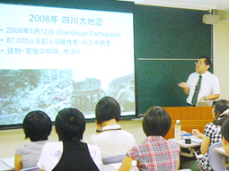 稍事休息以后,由工学研究科的五十岚晃副教授以“地震引起的构造物摇晃与抗震技术”为题,进行了有关尖端科学技术的模拟授课。