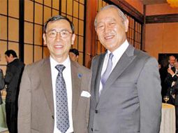 在大使馆招待会上与藤崎大使合影 |