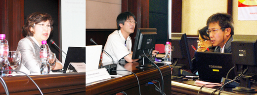 左起AUN秘书长Nantana,能源理工学研究所大垣教授,(正在就东南亚研究所的研究做介绍的)东南亚研究所河野泰之教授 |