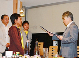 农学研究生院副院长绳田荣治向短期交流学生颁发认证书(在樟木(Camphora)咖啡餐厅) |