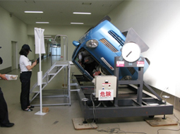 学生们围在高田株式会社产品周围与研究人员交流 |  高田株式会社侧翻事故乘坐体验:与车身一起旋转180度,切身体会系安全带的重要性 |