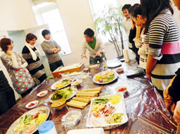 日本2月份都过“节分(立春的前一天)节”,与此相呼应,作为2月份的“KI-ZU-NA”活动,举办了“动手制作并品尝——惠方巻!”。参加者首先往米饭里拌醋,尝试制作了醋饭。随后,大家互相合作,利用金枪鱼、黄瓜、厚煎蛋、莴苣、鳄梨等食材,做出了各种不同类型的粗卷寿司(惠方卷)。参加者们在轻松的居家氛围中,愉快地与别人交谈,并试吃了做好的惠方卷。