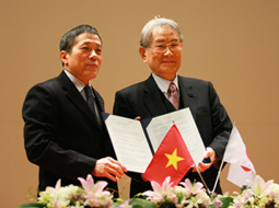 左起依次为Doan Xuan Hung大使、森口事务次官、Bui Van Ga副部长 |