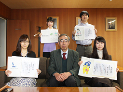 表彰仪式于2月23日全校图书馆员工会议后举行,附属图书馆馆长林信夫向获奖者颁发奖状与奖品。表彰仪式中还介绍了入围最后一轮评选的作品,出席仪式的众多图书馆员工纷纷对这批构思独特的作品表示惊叹,或发出会心的微笑,共同祝福图书馆新伙伴的诞生。 今后,吉祥物将广泛用于面向学生的宣传刊物、图书馆物品及新生活动等当中,标志用于网站及印刷品等。