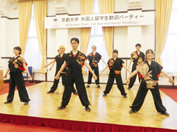 在例行的欢迎活动中,我校舞蹈队“彩京前线”表演了舞蹈《京炎!相会皆有缘》。学生舞者身着改良和服,表演了极具表现力的舞蹈,将宴会的气氛推向高潮。