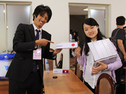 论坛最后一天举办了文化交流活动,我校与会学生表演了鞠躬的方法和北海道民谣《拉网小调》等,为大家介绍日本文化。肩负ASEAN+3未来的学生们齐聚一堂,加深了各国的相互理解,培养了彼此的友情。