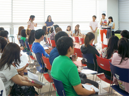 在介绍日本文化的研讨会上回答问题的我校学生 |