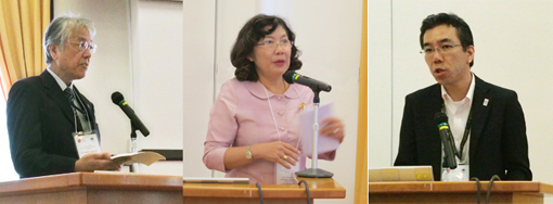 左起:正在致开幕词的赤松理事兼副校长、Nantana Gajaseni事务局长及进行主题演讲的有贺室长 |