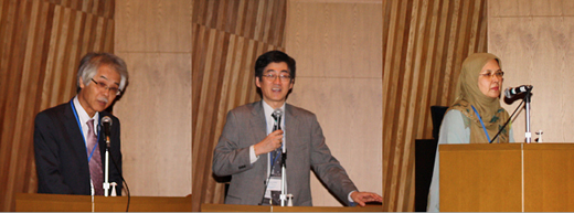 在第一天上午的开幕式上在剪辑了项目开始以来2年半的共同研究与交流情景的幻灯片放映中开始,工学研究科科长兼副理事北野正雄致欢迎辞后,日方协调员工学研究科教授清水芳久和马来西亚协调员马来亚大学教授Nik Meriam Nik Sulaiman致辞并介绍了研究进展情况,之后,滋贺县琵琶湖环境科学研究中心研究员佐藤祐一进行了特邀演讲。下午,继海报分会上的74件报告之后,防灾研究所教授中北英一、滋贺大学环境综合研究中心教授中村正久发表了主旨演讲。