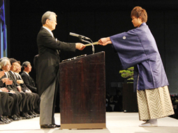 日本去年3月11日遭受了前所未有的大地震,尽管重建工程正在加速进行,但道路仍然漫长。在这样严峻的时代之中,我希望大家作为一个市民、同时作为今后社会的栋梁,在京都大学培养的人格力量的基础上发挥自身实力,以世界为舞台去开拓我国以及人类社会的未来。