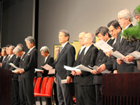 在舉國投入救援、復舊工作,同時開始研究重建課題的這個時候入學,想必將成為諸位永生難忘的記憶。板塊運動引發的巨大地震與大海嘯多次襲擊日本,研究人員不斷調查事實、累積知識,但是地震規模的設定不是由研究人員主導,安全方面的規模設定是由相關事業單位以及政府部門負責。這次的巨大地震與海嘯因為超過設定規模,導致核能發電廠也受創。在這樣極端嚴酷的情況下,災區以及其他地方,日本人相互幫助,維持井然有序的行動,嘗試恢復日常生活的光景,向世界展現了日本國民一向重視的「共生精神」,當中體現的共助精神值得日本國民驕傲。各國大學校長寄來的信函中,除了表達慰問外,也對日本人的高貴情操以及重建的堅定決心表達贊賞。京都雖然遠離災區,但我們將與災區分擔苦難,長期關注災區,不論是從大學的角度還是個人的立場,都將積極協助災區展開重建工作。