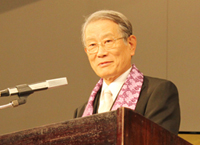 面對國家的財政危機以及堪稱國難的大震災,本校也迫切需要改革。京都大學將會更加努力,目標成為世界最務本的大學,不斷探究、解析事物根源,也請大家溫暖守護母校,繼續支持母校。