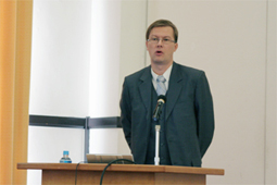 在專題討論會上,由國際交流促進機構主任橫山俊夫致辭之後,廣島大學的理事兼副校長二宮皓和芬蘭赫爾辛基大學的國際部部長Markus Laitinen分別作了題為“Desirable Internationalization of University Education(人們所希望的大學教育的國際化)”和“An International University without an International Office: Experiences in Mainstreaming Internationalisation at the University of Helsinki(沒有國際部的國際性大學-赫爾辛基大學的事例)”的講演。