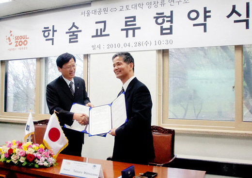 ◆2010年4月28日 靈長類研究所與首爾大公園簽訂了學術交流協定。