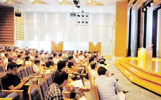 澤邊紀生教授主持會議,經營管理學院長小林潔司發表講話,隨後由齋藤靜樹先生發表主旨演講。