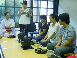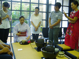 在用作會場的茶道資料館中,講師針對茶道和沏茶方法作了認真細緻而又簡單易懂的指導。正因為如此,全體參與者都學習了茶道相關知識,並都能熟練沏茶。體驗活動結束後,大家還參觀了茶道展會。