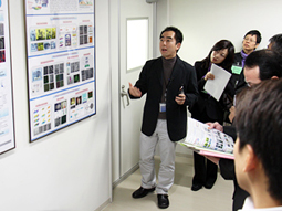 ◆2010年12月10日 海外媒體、各國總領事館、外資企業聯合考察團訪問iCeMS。 經濟產業省近畿經濟產業局舉辦了“生物之都、關西之旅——再生醫療與萬能細胞研究的今天與未來”活動,帶領由英國金融時報、美國時代週刊、美國財富雜誌等海外媒體、各國總領事館、外資企業相關人士組成的聯合考察團訪問了物質細胞統合系統中心(iCeMS)。 近畿經濟產業局策劃本活動的目的在於面向海外發佈資訊,並促進外資企業落戶關西。包括相關政府部門陪同人員在內的考察團一行60多人參觀了大阪大學醫學部附屬醫院未來醫療中心、獨立行政法人醫藥基礎研究所、iCeMS、iPS細胞研究所(CiRA)等4個機構。 作為跨越政府、企業及研究機構的國際網路構建場所,iCeMS安排了交流午餐時間。交流午餐會後,iCeMS中心的中辻憲夫主任與株式會社Reprocell的董事長兼總經理橫山周史舉行了研討會。 中辻主任在日本率先培育胚胎幹(ES)細胞,確立分配體制,最近又利用ES細胞和誘導多能幹(iPS)細胞製作了阿爾茨海默病等的疾病模型,並以此推進製藥研究,他在簡要介紹了iCeMS的情況後,圍繞“旨在解析病態與創製藥品的多能幹細胞跨學科研究與應用”發表了演講。 橫山先生則從全球首家將人體iPS細胞培育而成的心肌細胞和神經細胞實現產品化的企業——Reprocell的角度,發表了關於“幹細胞商務”的演講。 由於與會人士的國家、行業、領域多種多樣,因此兩人在答疑時收到了從各種角度提出的問題。 最後,考察團分成兩組,參觀了iCeMS本館。iCeMS CHEN小組助教龜井謙一郎與中辻小組講師饗庭一博介紹了包括ES/iPS細胞等研究在內的各小組的最新成果,歷時3個小時,考察團圓滿結束了在iCeMS的考察活動。