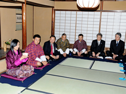 公主一行人在眾多茶道文化的歷史遺產中也堪稱秀逸、與茶道鼻祖千利休居士有著淵源的裡千家•今日庵(重要文化財產)欣賞了典雅的茶道,並就今後不丹王國的發展與京都大學的不丹研究會等與松本校長等人進行了暢談。出席這次茶會的還有本校的理事兼副校長赤松明彥、校長室副室長淺野耕太、助理理事間藤徹、靈長類研究所長松澤哲郎、東南亞研究所教授松林公藏。