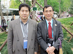 出席清華大學創校百周年校慶「世紀林」植樹活動的森機構負責人(右)與「世紀林」設計者清華大學建築學院教授李樹華(1997年修畢本校農學研究所博士後期課程) |