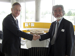 本次聯合研討會因為有去年Wilmut爵士等人在iCeMS開辦研究班、之後的互訪以及今年三月簽署學術交流協定的鋪路才得以實現。閉幕式上ffrench-Constant所長談到對未來的展望,「希望未來能繼續這類交流,達成發表合著論文以及共同研究等的具體成果」。中辻據點負責人對此表示贊同並致謝辭,研討會隆重閉幕。