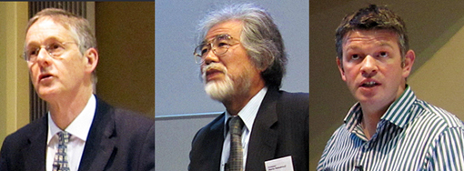 致開幕辭的ffrench-Constant所長、中辻據點負責人、MRC-CRM的David Hay研究小組負責人