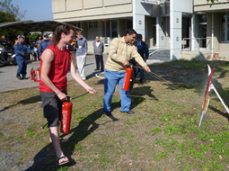 外籍研究人員與留學生體驗使用滅火器滅火 |