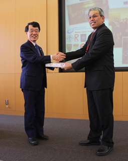 小森研究所所長致贈紀念品給馬來亞大學Jamil前副校長助理 |