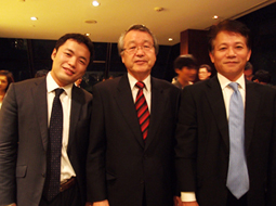 左起依序為校友會幹事德谷校友、大西理事兼副校長、校友會西崎會長 |