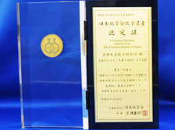 認定證書頒發儀式於3月26日在慶應大學日吉校區召開的日本化學會第92屆春季年會上舉行,頒給了時任宣博前院長與尤尼吉可株式會社、株式會社可樂麗的代表。
