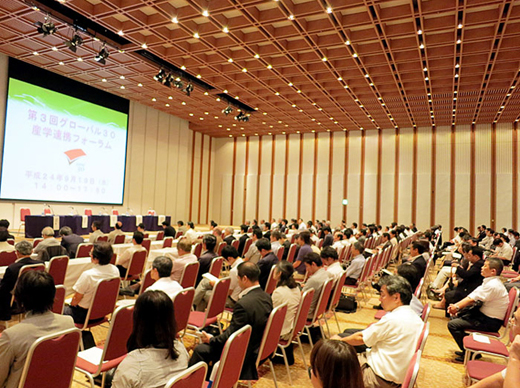產學合作論壇由國際化據點整備事業獲選學校主辦,本次是第三屆,與一般社團法人日本經濟團體聯合會共同舉辦,地點在東京經團連會館會議中心。本論壇旨在加深大學與產業界的合作,並就培養與活用高水準國際人才的相關課題與展望進行討論,今年的主題是「大學的國際化與培養全球人才所應有作為」,有來自產業界與大學等300多人與會。