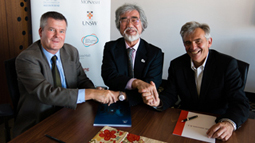 左起分別為墨爾本大學馬克哈格里夫斯副校長、中辻教授、佩拉教授 |
